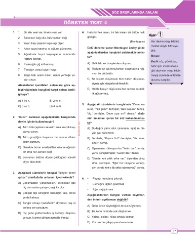 Page 38 - ATA YAYINCILIK 7. Sınıf Ben Korkmam Türkçe Soru Bankası