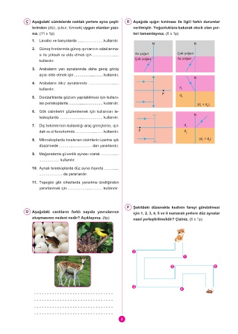 Ç Aşağıdaki cümlelerde noktalı yerlere ayna çeşit- E Aşağıda ışığın kırılması ile ilgili farklı durumlar