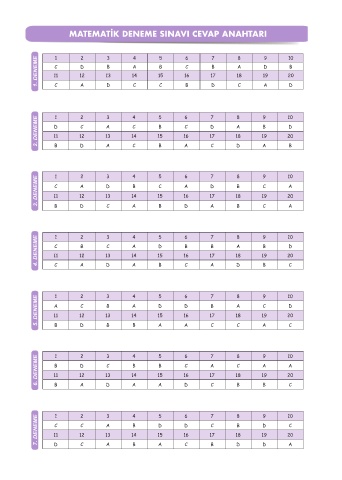 MATEMATİK DENEME SINAVI CEVAP ANAHTARI