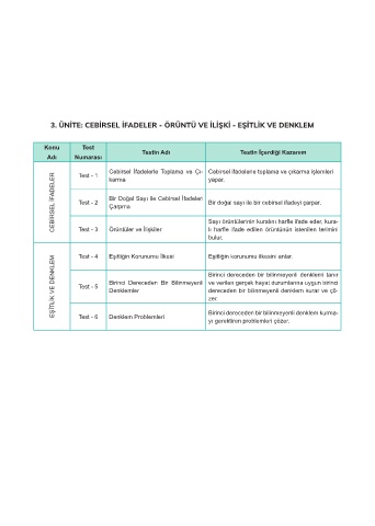 3. ÜNİTE: CEBİRSEL İFADELER - ÖRÜNTÜ VE İLİŞKİ - EŞİTLİK VE DENKLEM