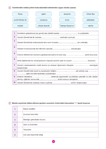 2 Cümlelerdeki noktalı yerlere kutucuklardaki kelimelerden uygun olanları yazınız.