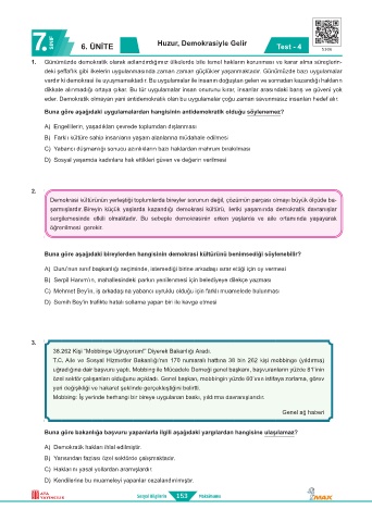 7 SINIF 6. ÜNİTE Huzur, Demokrasiyle Gelir Test - 4 5306