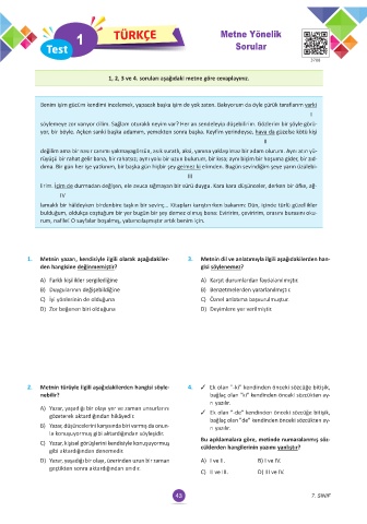 Page 43 - ATA YAYINCILIK 7. sinif Turkce Soru Dunyasi
