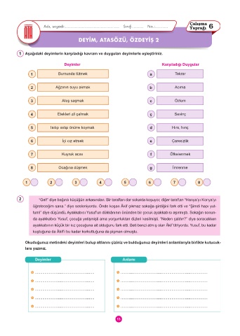 Okuduğunuz metindeki deyimleri bulup altlarını çiziniz ve bulduğunuz deyimleri anlamlarıyla birlikte kutucuk-