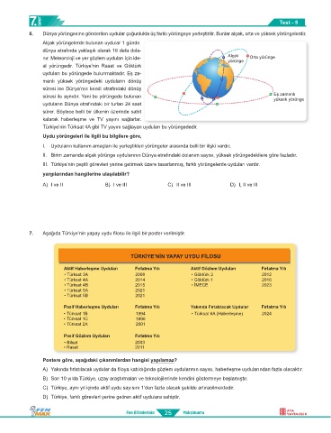7. Aşağıda Türkiye’nin yapay uydu filosu ile ilgili bir poster verilmiştir.