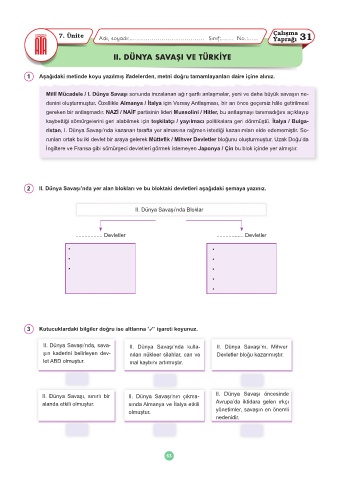 7. Ünite Adı, so yadı:..................................... Sı nıf:...... No.:..... Çalışma