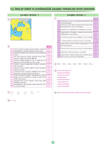 T.C. İNKILAP TARİHİ VE ATATÜRKÇÜLÜK ÇALIŞMA YAPRAKLARI CEVAP ANAHTARI