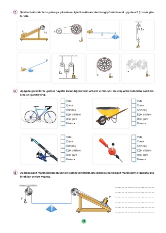 D Aşağıda görsellerde günlük hayatta kullandığımız bazı araçlar verilmiştir. Bu araçlarda kullanılan basit ma-