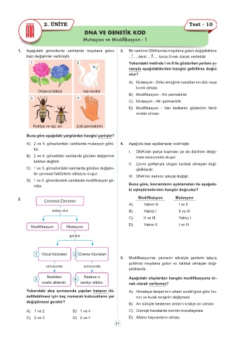 1. Aşağıdaki görsellerde canlılarda meydana gelen 3. Bir canlının DNA’sında meydana gelen değişikliklere