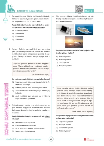 ÜNİTE KADER VE KAZA İNANCI TEST 3