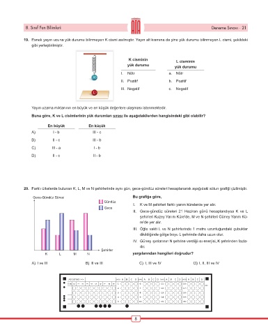 8. Sınıf Fen Bilimleri Deneme Sınavı - 21