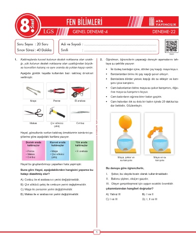 A) Cımbız ile el arabasının yerini değiştirmelidir. II. Balonu şişiren, oksijen gazıdır.