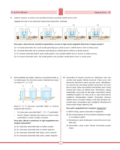 9. Murat şekildeki gibi kapları, belirlenen seviyelerine kadar su 10. Elementleri bir düzene koymak için Döbereiner, bazı ele-