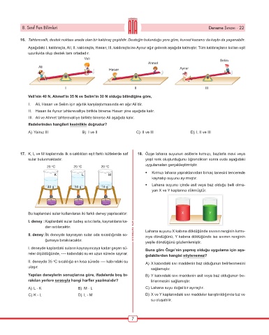 8. Sınıf Fen Bilimleri Deneme Sınavı - 22