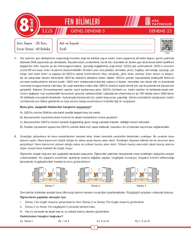 A) GDO’lu ürünler DNA’larında belirli özelliği değiştirilmiş ürünlerdir.
