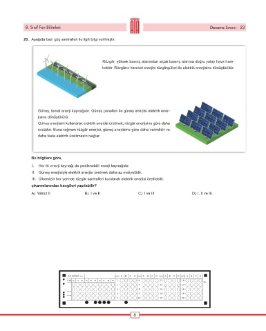 8. Sınıf Fen Bilimleri Deneme Sınavı - 23