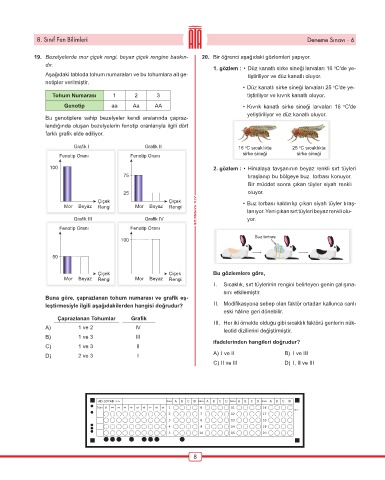 19. Bezelyelerde mor çiçek rengi, beyaz çiçek rengine baskın- 20. Bir öğrenci aşağıdaki gözlemleri yapıyor.