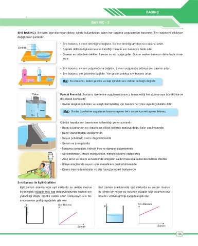 yüksekliği doğru orantılı olarak artar. Dolayısıyla sıvı ba- basıncı -zaman grafiği aşağıdaki gibi olur.