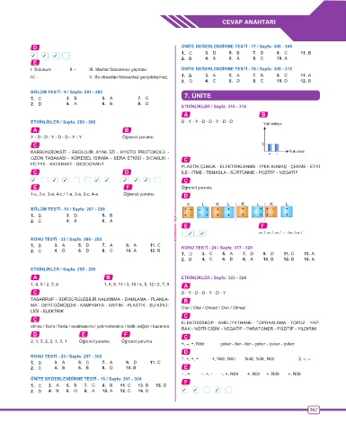 D ÜNİTE DEĞERLENDİRME TESTİ - 17 / Sayfa: 305 - 308