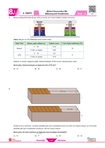 Page 142 - ATA YAYINCILIK 8. Sınıf Math Max Soru Bankası