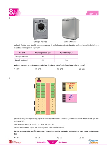 Page 144 - ATA YAYINCILIK 8. Sınıf Math Max Soru Bankası