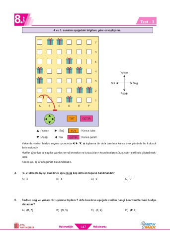 4. (E, 2) deki hediyeyi alabilmek için en az kaç defa ok tuşuna basılmalıdır?