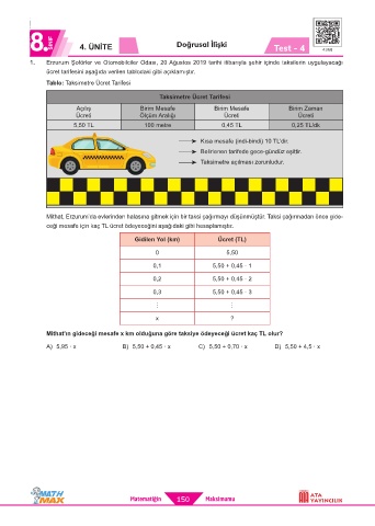 Page 151 - ATA YAYINCILIK 8. Sınıf Math Max Soru Bankası