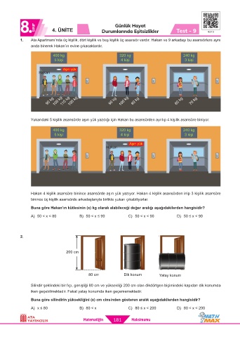 8 SINIF 4. ÜNİTE Durumlarında Eşitsizlikler Test - 9 4373