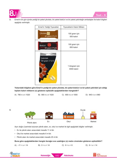 Page 183 - ATA YAYINCILIK 8. Sınıf Math Max Soru Bankası