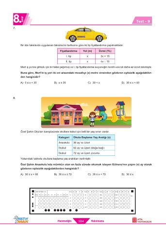 Page 185 - ATA YAYINCILIK 8. Sınıf Math Max Soru Bankası