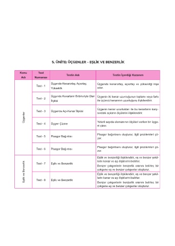 Konu Test Testin Adı Testin İçerdiği Kazanım