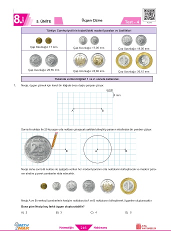 Page 217 - ATA YAYINCILIK 8. Sınıf Math Max Soru Bankası