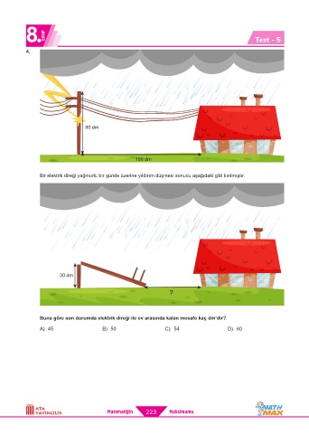 Buna göre son durumda elektrik direği ile ev arasında kalan mesafe kaç dm’dir?