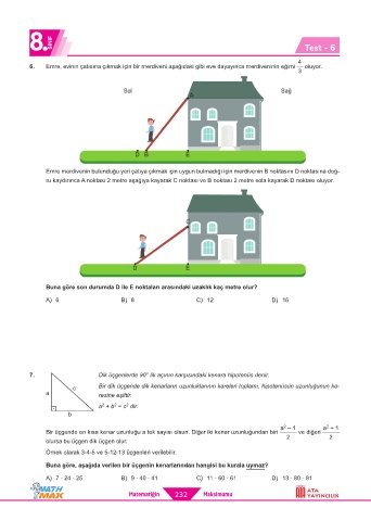 6. Emre, evinin çatısına çıkmak için bir merdiveni aşağıdaki gibi eve dayayınca merdiveninin eğimi oluyor.