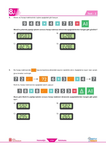 Page 260 - ATA YAYINCILIK 8. Sınıf Math Max Soru Bankası