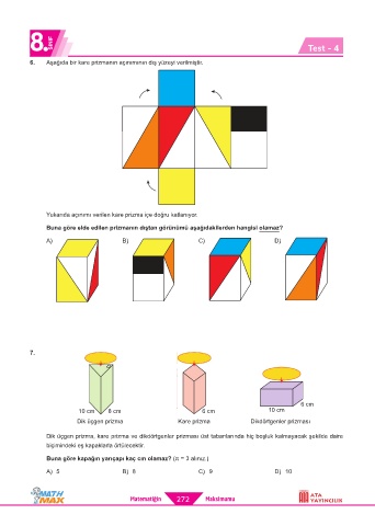 6. Aşağıda bir kare prizmanın açınımının dış yüzeyi verilmiştir.