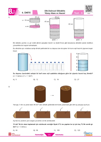8 SINIF 6. ÜNİTE Dik Dairesel Silindirin Test - 6 4389