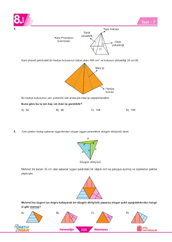 Page 289 - ATA YAYINCILIK 8. Sınıf Math Max Soru Bankası
