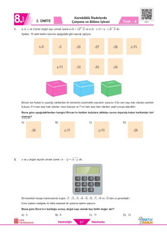 Page 68 - ATA YAYINCILIK 8. Sınıf Math Max Soru Bankası