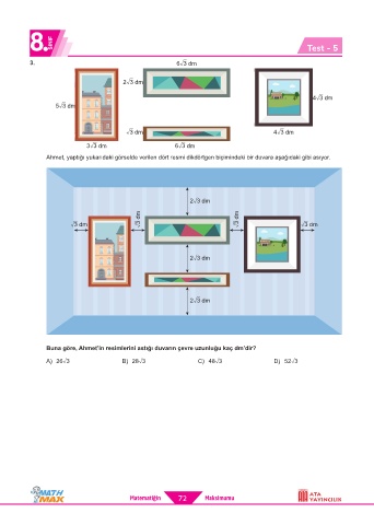 Buna göre, Ahmet’in resimlerini astığı duvarın çevre uzunluğu kaç dm’dir?