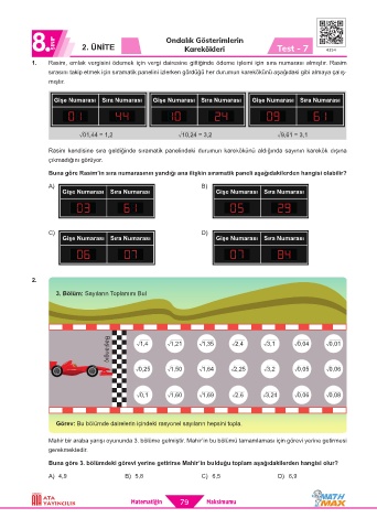 8 SINIF 2. ÜNİTE Ondalık Gösterimlerin Test - 7 4354