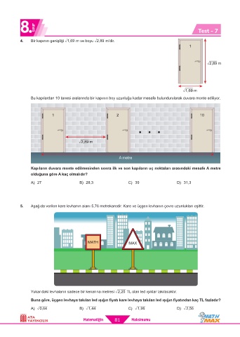 Page 82 - ATA YAYINCILIK 8. Sınıf Math Max Soru Bankası