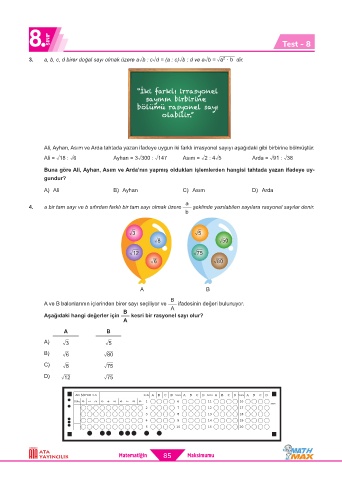 Page 86 - ATA YAYINCILIK 8. Sınıf Math Max Soru Bankası
