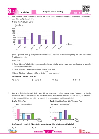 8 SINIF 2. ÜNİTE Çizgi ve Sütun Grafiği Test - 9 4356