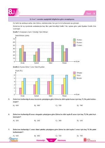 7. Zehra’nın kullandığı C aracı dizel yakıtla çalıştığına göre Zehra bu dört ayda C aracı için kaç TL’lik yakıt