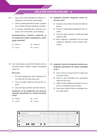 12. I. Ayşe ve ben ayda bir Boğaz’da bir akşam ye- 14. Aşağıdaki cümlelerin hangisinde anlatım bo-