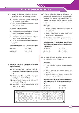 12. Aşağıdaki cümlelerin hangisinde anlatım bo-