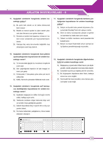 11. Aşağıdaki cümlelerin hangisinde anlatım bo- 14. Aşağıdaki cümlelerin hangisinde tamlama yan-