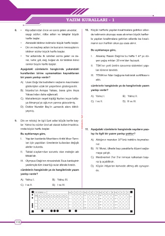 rında küçük harfle başlar. 11. Aşağıdaki cümlelerin hangisinde sayıların yazı-
