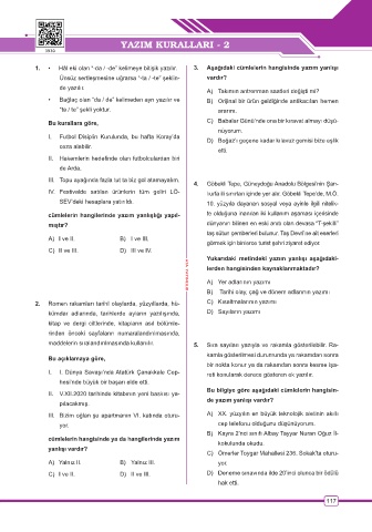 1. • Hâl eki olan “-da / -de” kelimeye bitişik yazılır. 3. Aşağıdaki cümlelerin hangisinde yazım yanlışı